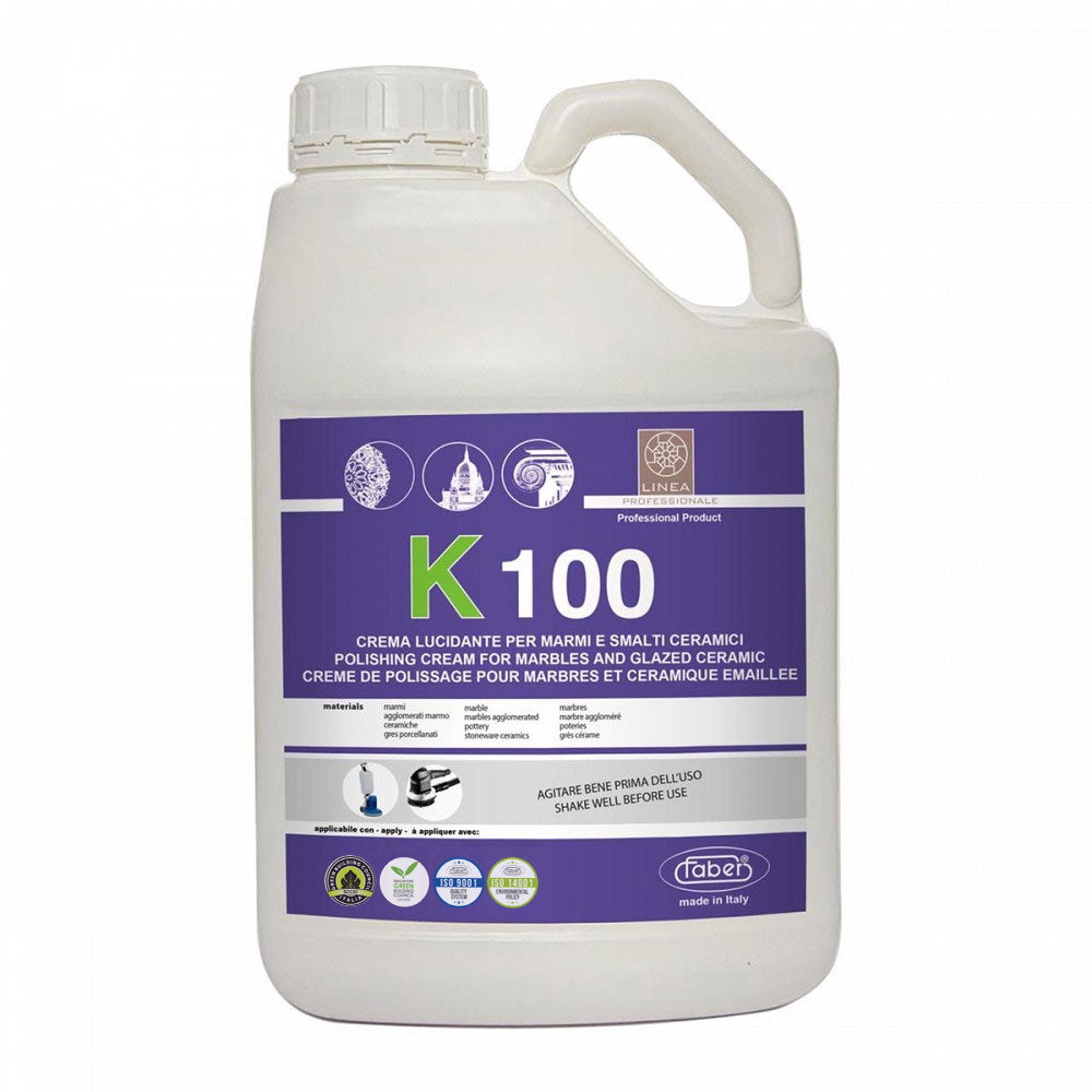 K100 is a multi-purpose, water-based cream to care for and restore surfaces in marble, marble-based agglomerates, stoneware, and glazed ceramics. It is used to restore the shine to surfaces when this has been reduced by wear or foot traffic, but it can also be used efficiently to restore chemical aggression and surface scratches. The product also offers good resistance to dirt and foot traffic.